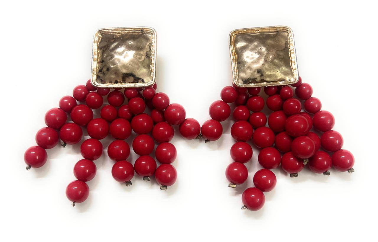 Gold and red beaded drop earrings